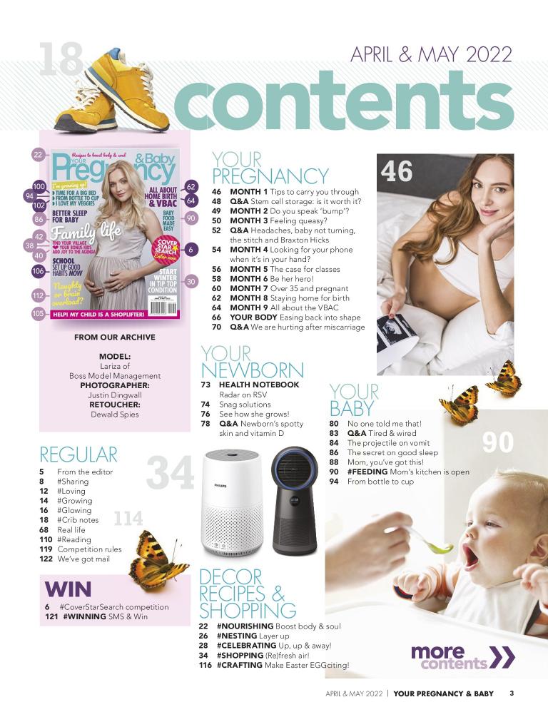 Your Pregnancy is the only local magazine that offers relevant, credible and accurate information on all aspects of pregnancy. Its local and international experts answer all questions quickly and respectfully. The magazine acknowledges pregnant women’s need to look and feel good. They are concerned about their baby’s health and wellness, but also care about their own. The magazine provides all the info that’s needed, as well as the latest fashion and beauty trends, health issues and exercises. It covers all aspects of pregnancy. The team loves what it does – and it shows.