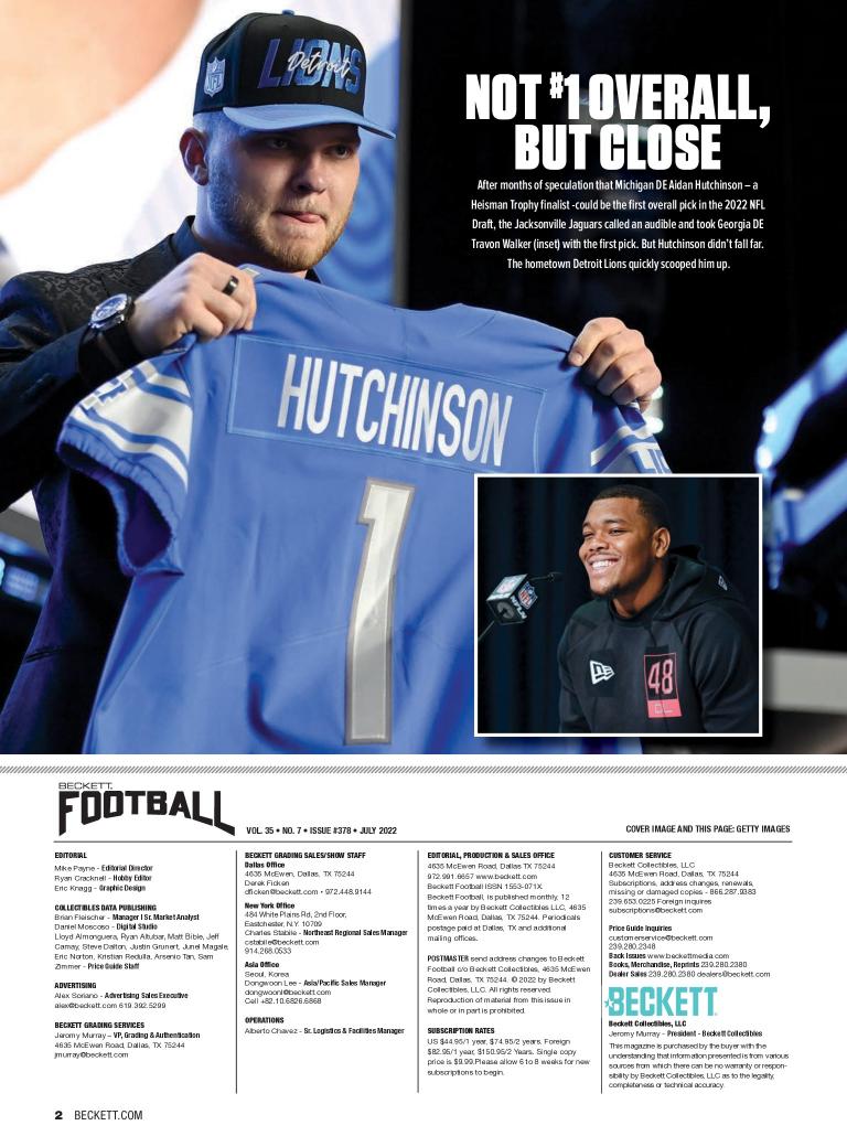 Dive into the exciting world of football collectibles and memorabilia with Beckett Football Magazine. We're thrilled to introduce you to this publication, your go-to source for all things related to football cards, collectibles, and the vibrant hobby of football memorabilia. Beckett Football Magazine, published by Beckett Collectibles LLC, is not just a magazine; it's your comprehensive guide to the world of football collectibles. As you explore the pages of Beckett Football Magazine, you'll find a world of content that caters to football collectors and fans alike: * Price Guides: Access up-to-date price guides for football cards, helping you stay informed about the value of your collectibles. * Card Reviews: Explore in-depth reviews of football cards, including insights into key players, rookie cards, and special editions. * Market Trends: Stay ahead of market trends and discover the latest developments in the football collectibles hobby. * Collector Features: Dive into features on passionate collectors, their prized football memorabilia, and their stories. * Expert Analysis: Benefit from expert analyses and commentary on the football collectibles market and industry. Beckett Football Magazine is your ultimate guide to navigating the world of football collectibles. Subscribe now and stay on top of the latest trends, values, and stories in the exciting hobby of football memorabilia.