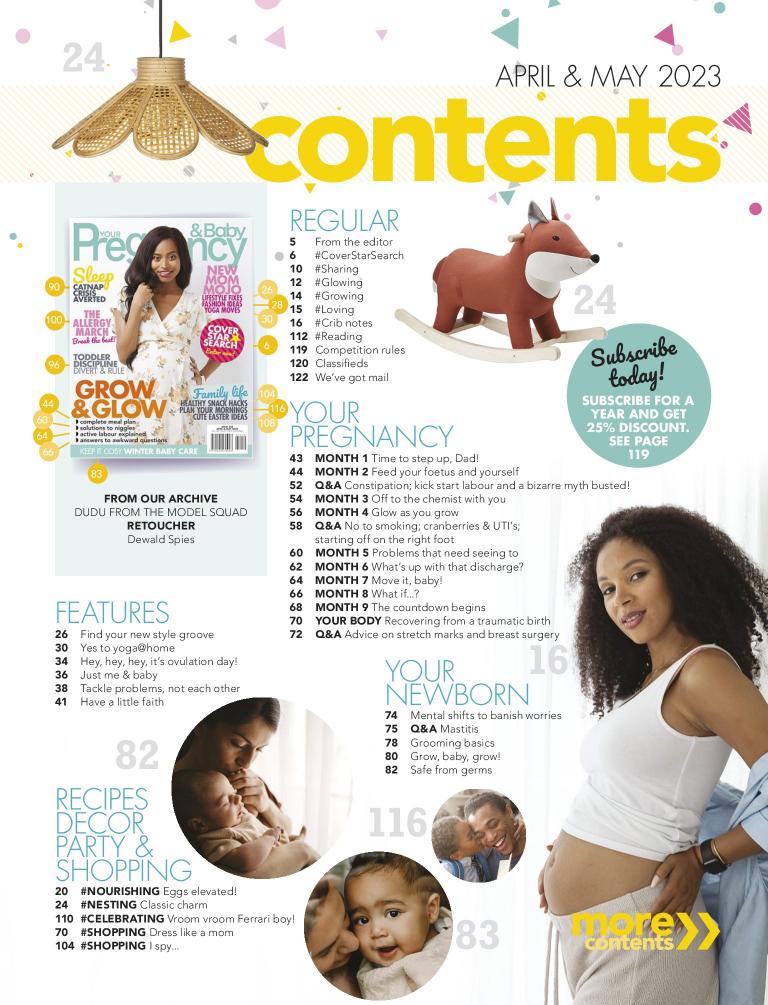 Your Pregnancy is the only local magazine that offers relevant, credible and accurate information on all aspects of pregnancy. Its local and international experts answer all questions quickly and respectfully. The magazine acknowledges pregnant women’s need to look and feel good. They are concerned about their baby’s health and wellness, but also care about their own. The magazine provides all the info that’s needed, as well as the latest fashion and beauty trends, health issues and exercises. It covers all aspects of pregnancy. The team loves what it does – and it shows.