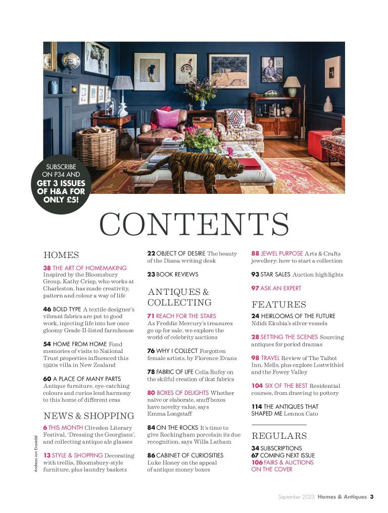 Homes & Antiques is a must-read for those who love great design and beautiful objects from every era. Alongside our unrivalled guides to antiques and collectables, you’ll find inspiring real interiors, sizzling style and decorating ideas and a huge range of features on everything from heritage and architecture to vintage fashion.