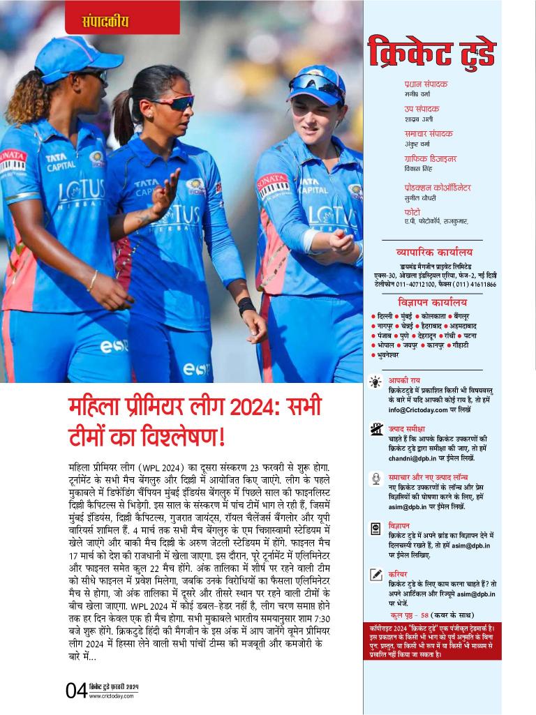 Cricket Today is a monthly cricket magazine in Hindi published by a Delhi-based company, Diamond Magazines. It is one of the most popular cricket magazines in India, and is known for its in-depth coverage of all aspects of the game, including: * Match reports and analysis: Cricket Today provides detailed match reports and analysis of all major cricket matches, including Test matches, One-Day Internationals, and T20 Internationals. The magazine also covers domestic cricket tournaments in India, such as the Ranji Trophy and the Indian Premier League. * Player profiles and interviews: Cricket Today features profiles of top cricket players from India and around the world, as well as interviews with them. These profiles and interviews provide readers with insights into the lives and careers of these players. * Expert columns and commentary: Cricket Today features columns and commentary from leading cricket experts, including former players, coaches, and journalists. These columns and commentary provide readers with different perspectives on the game. * Cricket news and trends: Cricket Today covers the latest cricket news and trends from India and around the world. The magazine also provides analysis of the latest developments in the game. Cricket Today is a valuable resource for anyone who is interested in cricket. It is a must-read for anyone who is looking to stay informed about the latest cricket news and trends, or who is looking for in-depth coverage of all aspects of the game.