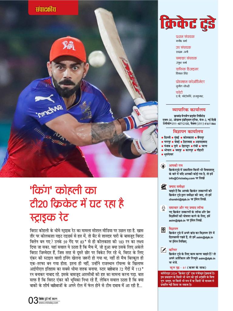 Cricket Today is a monthly cricket magazine in Hindi published by a Delhi-based company, Diamond Magazines. It is one of the most popular cricket magazines in India, and is known for its in-depth coverage of all aspects of the game, including: * Match reports and analysis: Cricket Today provides detailed match reports and analysis of all major cricket matches, including Test matches, One-Day Internationals, and T20 Internationals. The magazine also covers domestic cricket tournaments in India, such as the Ranji Trophy and the Indian Premier League. * Player profiles and interviews: Cricket Today features profiles of top cricket players from India and around the world, as well as interviews with them. These profiles and interviews provide readers with insights into the lives and careers of these players. * Expert columns and commentary: Cricket Today features columns and commentary from leading cricket experts, including former players, coaches, and journalists. These columns and commentary provide readers with different perspectives on the game. * Cricket news and trends: Cricket Today covers the latest cricket news and trends from India and around the world. The magazine also provides analysis of the latest developments in the game. Cricket Today is a valuable resource for anyone who is interested in cricket. It is a must-read for anyone who is looking to stay informed about the latest cricket news and trends, or who is looking for in-depth coverage of all aspects of the game.