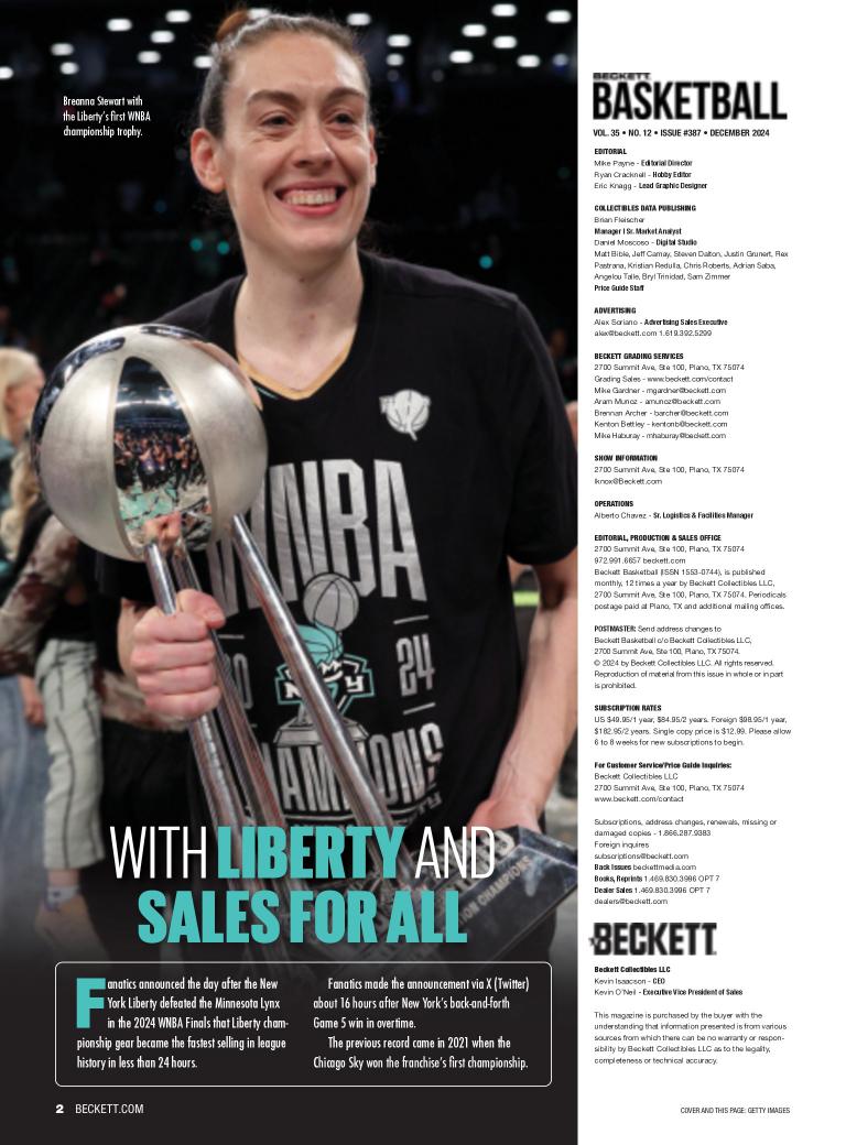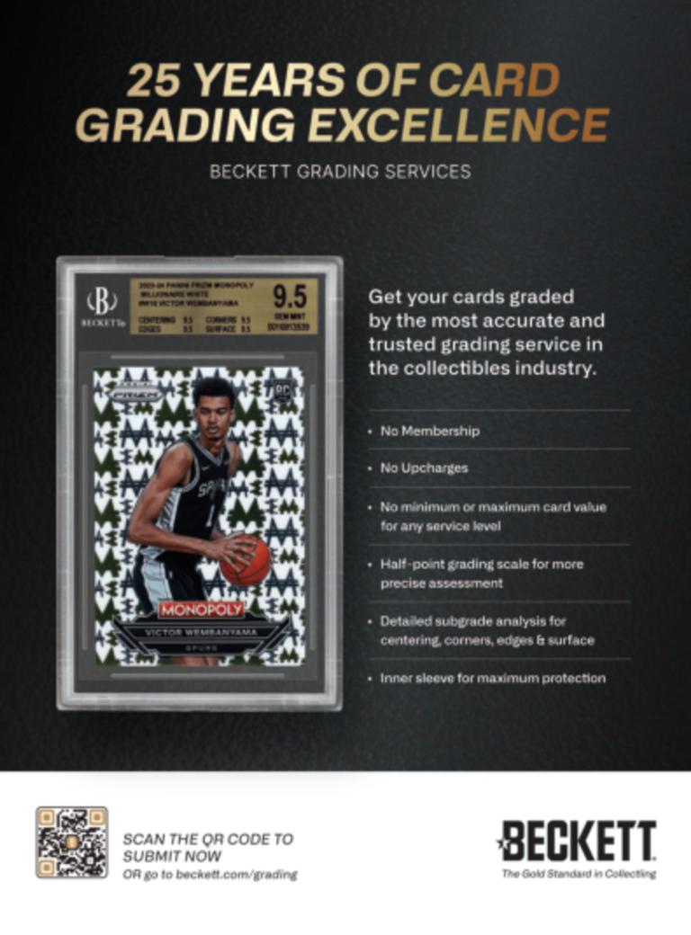 Step into the thrilling world of basketball collectibles and memorabilia with Beckett Basketball Magazine. We're excited to introduce you to this publication, your go-to source for all things related to basketball cards, collectibles, and the vibrant hobby of basketball memorabilia. Beckett Basketball Magazine, published by Beckett Collectibles LLC, is not just a magazine; it's your comprehensive guide to the world of basketball collectibles. As you explore the pages of Beckett Basketball Magazine, you'll find a world of content that caters to basketball collectors and fans alike: * Price Guides: Access up-to-date price guides for basketball cards, helping you stay informed about the value of your collectibles. * Card Reviews: Explore in-depth reviews of basketball cards, including insights into key players, rookie cards, and special editions. * Market Trends: Stay ahead of market trends and discover the latest developments in the basketball collectibles hobby. * Collector Features: Dive into features on passionate collectors, their prized basketball memorabilia, and their stories. * Expert Analysis: Benefit from expert analyses and commentary on the basketball collectibles market and industry. Beckett Basketball Magazine is your ultimate guide to navigating the world of basketball collectibles. Subscribe now and stay on top of the latest trends, values, and stories in the exciting hobby of basketball memorabilia.