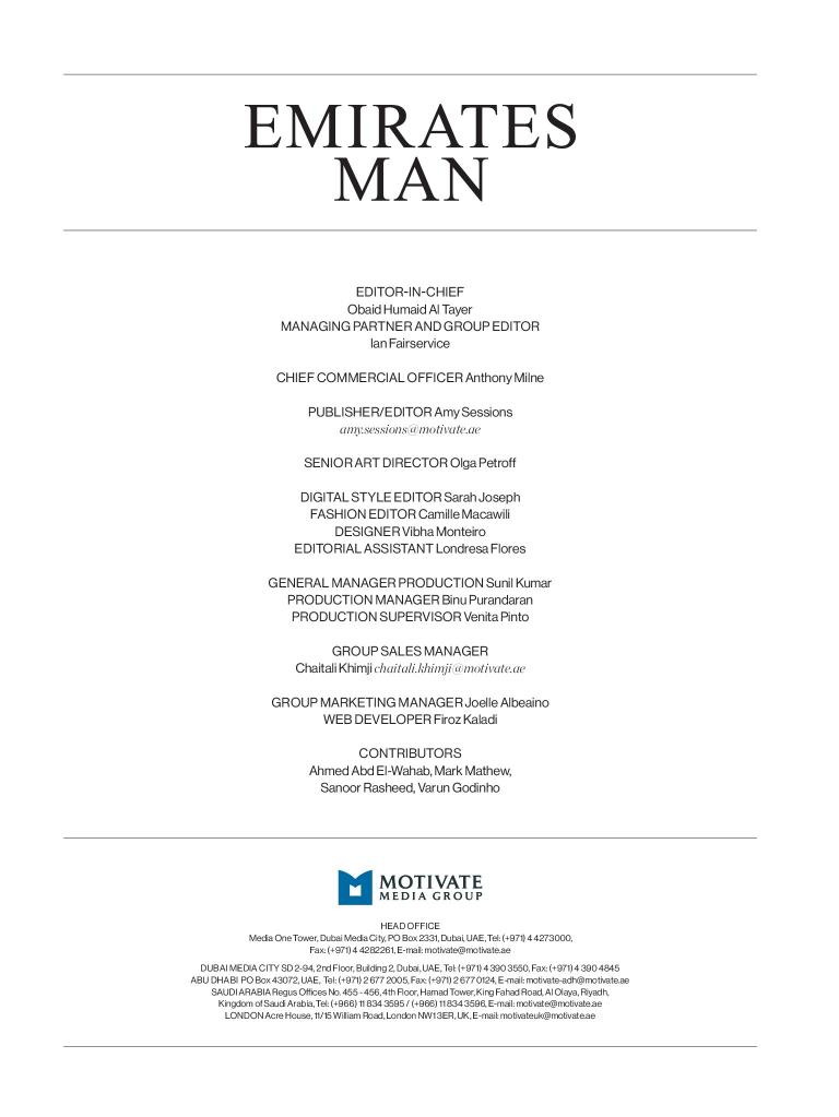 Emirates Man encapsulates the future of men’s lifestyle in the region – knowing that style and substance are intrinsically linked. It’s about looking smart and living smarter.