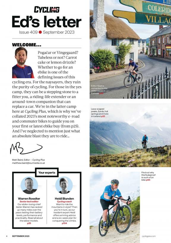 Cycling Plus is the manual for the modern road cyclist. Whether you're cycling weekly, an occasional new rider or a Tour de France fan you’ll find everything you need. Each issue is packed with buying advice and tests of essential cycling gear - everything from bikes to bags! Cycling Plus is the place to find training advice, nutrition secrets and practical tips guaranteed to improve your bicycling. It's also full of inspirational rides, real-life cycling stories and entertaining riding-related features.