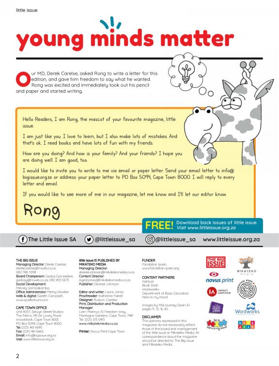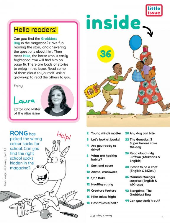 little issue is a quarterly magazine aimed at learners in the foundation phase (Grade R –3). The magazine supports foundation phase learners with fun, interactive learning material that supports their early learning. Content is aligned to the Department of Basic Education’s National Curriculum Framework for the foundation phase.