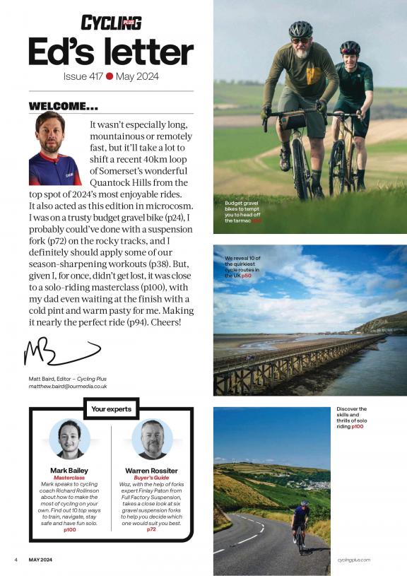 Cycling Plus is the manual for the modern road cyclist. Whether you're cycling weekly, an occasional new rider or a Tour de France fan you’ll find everything you need. Each issue is packed with buying advice and tests of essential cycling gear - everything from bikes to bags! Cycling Plus is the place to find training advice, nutrition secrets and practical tips guaranteed to improve your bicycling. It's also full of inspirational rides, real-life cycling stories and entertaining riding-related features.