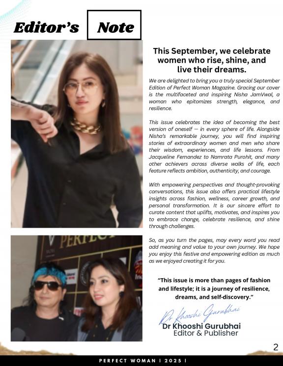 Our magazine, ‘Perfect Woman’ a fashion and lifestyle magazine, distributed across the country and is primarily targeted at the women of today, who are assertive and tenacious. Branched out of ‘GGC Limited’, an organization devoted to film production, this magazine has witnessed fruitful innings in the 3 years, since it came into being. Perfect Woman’s aim is to enhance their ambitious side and encourage and inspire women to achieve the goals that they have dreamed of accomplishing. Through this magazine we connect with women of every age and cater to her every need- be it fashion, beauty, fitness, lifestyle, work, food, relationship or travel. Now celebrating our fourth anniversary this year.