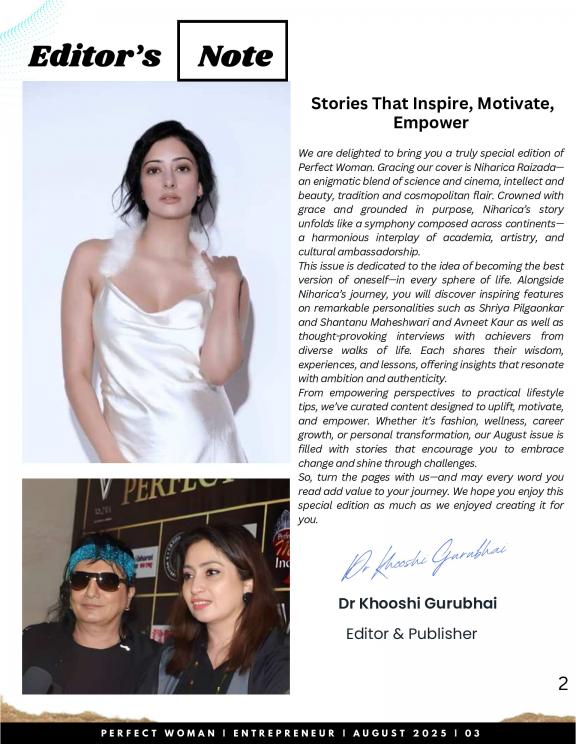 Our magazine, ‘Perfect Woman’ a fashion and lifestyle magazine, distributed across the country and is primarily targeted at the women of today, who are assertive and tenacious. Branched out of ‘GGC Limited’, an organization devoted to film production, this magazine has witnessed fruitful innings in the 3 years, since it came into being. Perfect Woman’s aim is to enhance their ambitious side and encourage and inspire women to achieve the goals that they have dreamed of accomplishing. Through this magazine we connect with women of every age and cater to her every need- be it fashion, beauty, fitness, lifestyle, work, food, relationship or travel. Now celebrating our fourth anniversary this year.