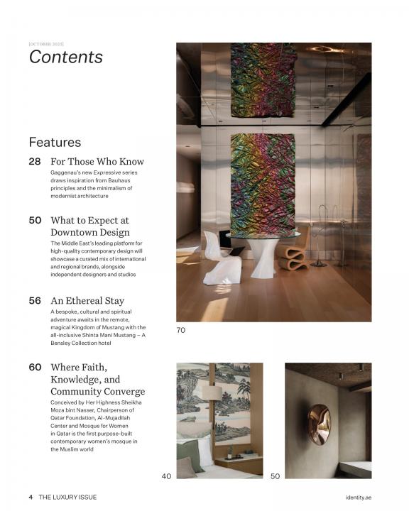 identity is the Middle East's interiors, design and property magazine. Identity is the region's first consumer design, interiors, architecture and property magazine with an exclusively contemporary focus.